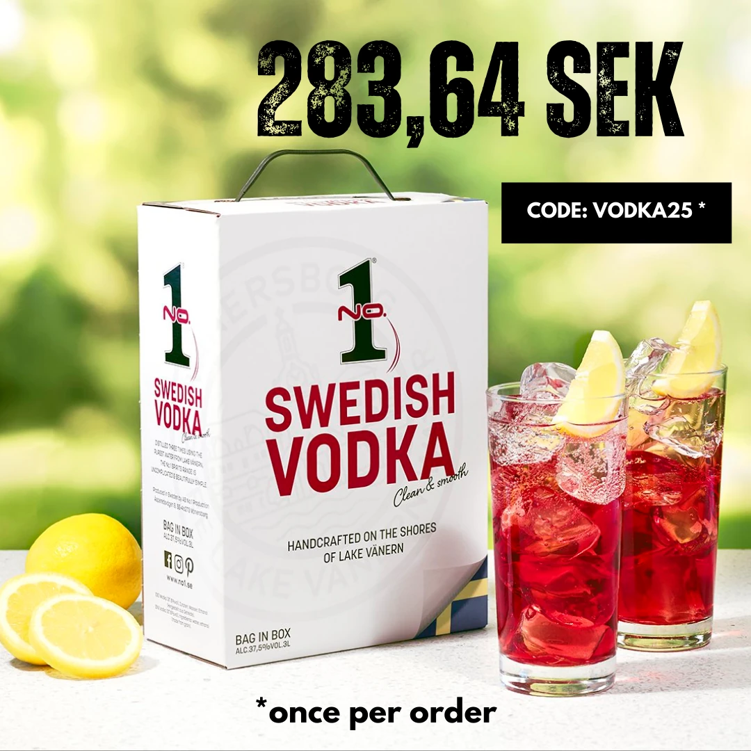 No.1 Gin BIB 3L och No.1 Vodka BIB 3L till toppris på 283:- styck! Ange koderna GIN25 & VODKA25 i kassan.